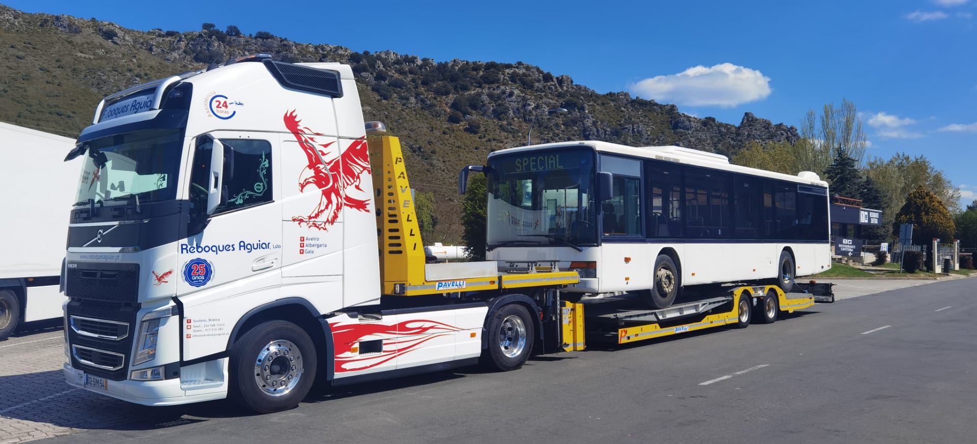 Temos capacidade para transportar qualquer tipo de viatura pesada, autocarros, pesados de mercadorias, galeras e outros.